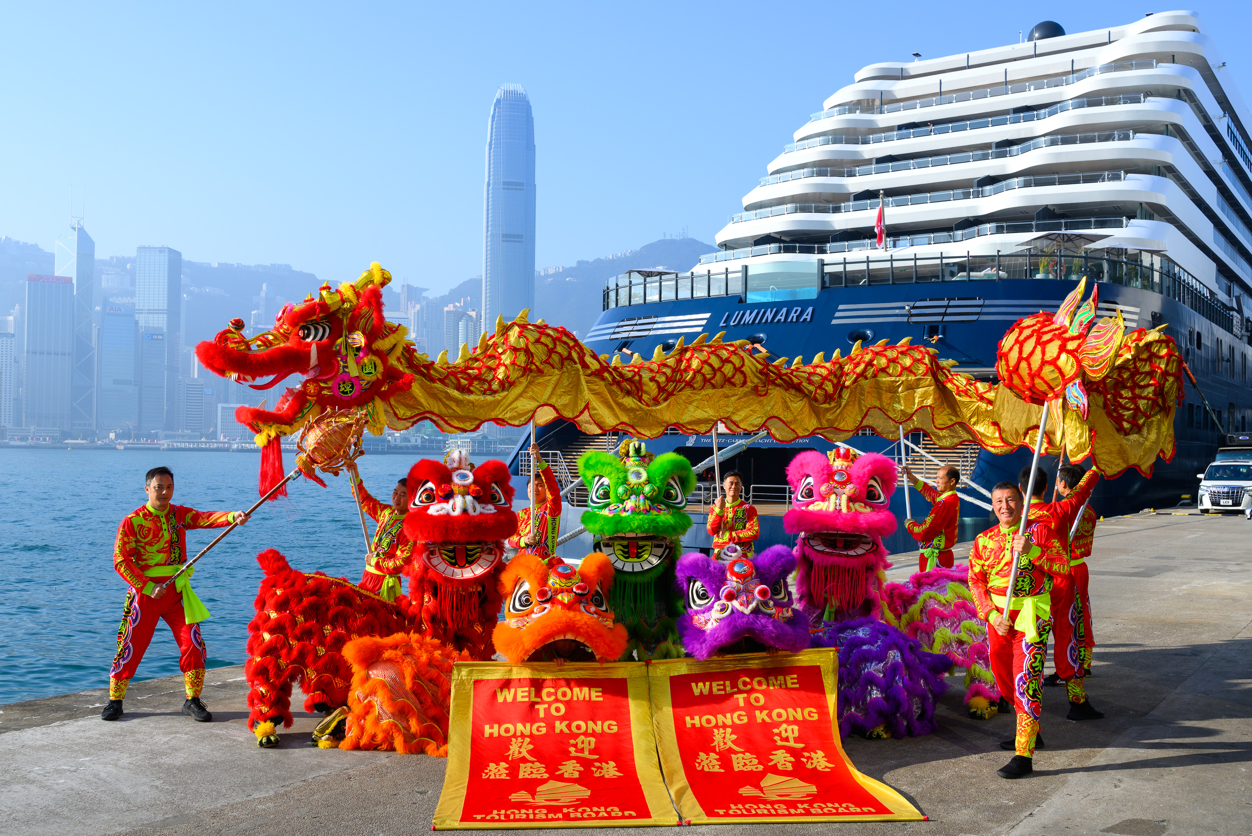 The yacht entered Victoria Harbour and docked at Ocean Terminal in Tsim Sha Tsui this morning following the launch of its Asia-Pacific itineraries from Singapore in December last year. HKTB commemorated the occasion with a water salute, alongside energetic dragon and lion dances. A welcoming ceremony and luncheon were hosted on board, attended by Secretary for Culture, Sports and Tourism Miss Rosanna Law, Commissioner for Tourism Mrs. Angelina Cheung, HKTB Executive Director Mr. Anthony Lau, and representatives from The Ritz-Carlton Yacht Collection, celebrating Luminara’s first arrival in Hong Kong.