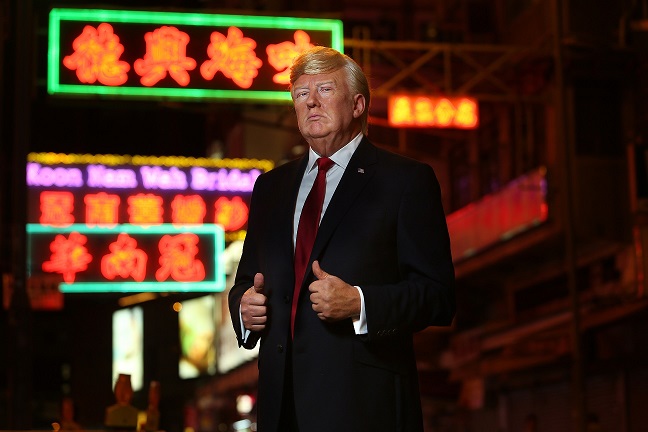 The newly unveiled President Donald Trump figure is dressed in his recognisable Republican red silk-tie, navy power suit and Made in American flag lapel pin. Visitors to Madame Tussauds Hong Kong will have a chance to tweet support “him” back on the new interactive social media wall inside the famed attraction by hashtagging #RealWaxDonaldTrump on Facebook, Twitter and Instagram.