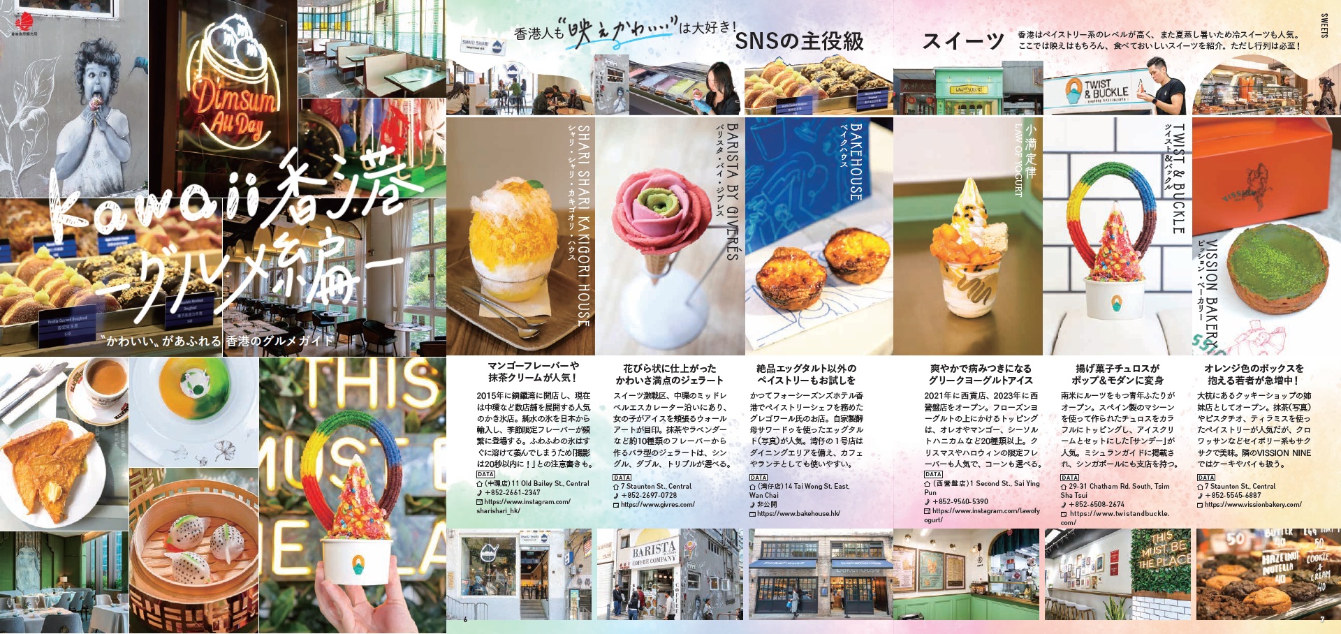 最初にご紹介するのが、A5版/16ページのガイドブック『kawaii香港 -グルメ編-』。 商品造成のヒントにしていただくのはもちろんですが、 店頭やイベントでの香港販促用に印刷版のご提供も可能です。 さらに、商品造成やSNSでの情報発信用にイメージ画像などもご用意しますので、 まずは下記のPDF版ガイドブックをチェック!