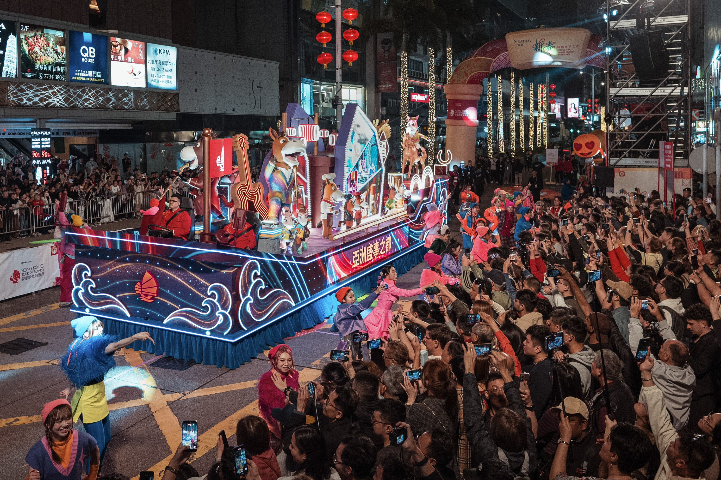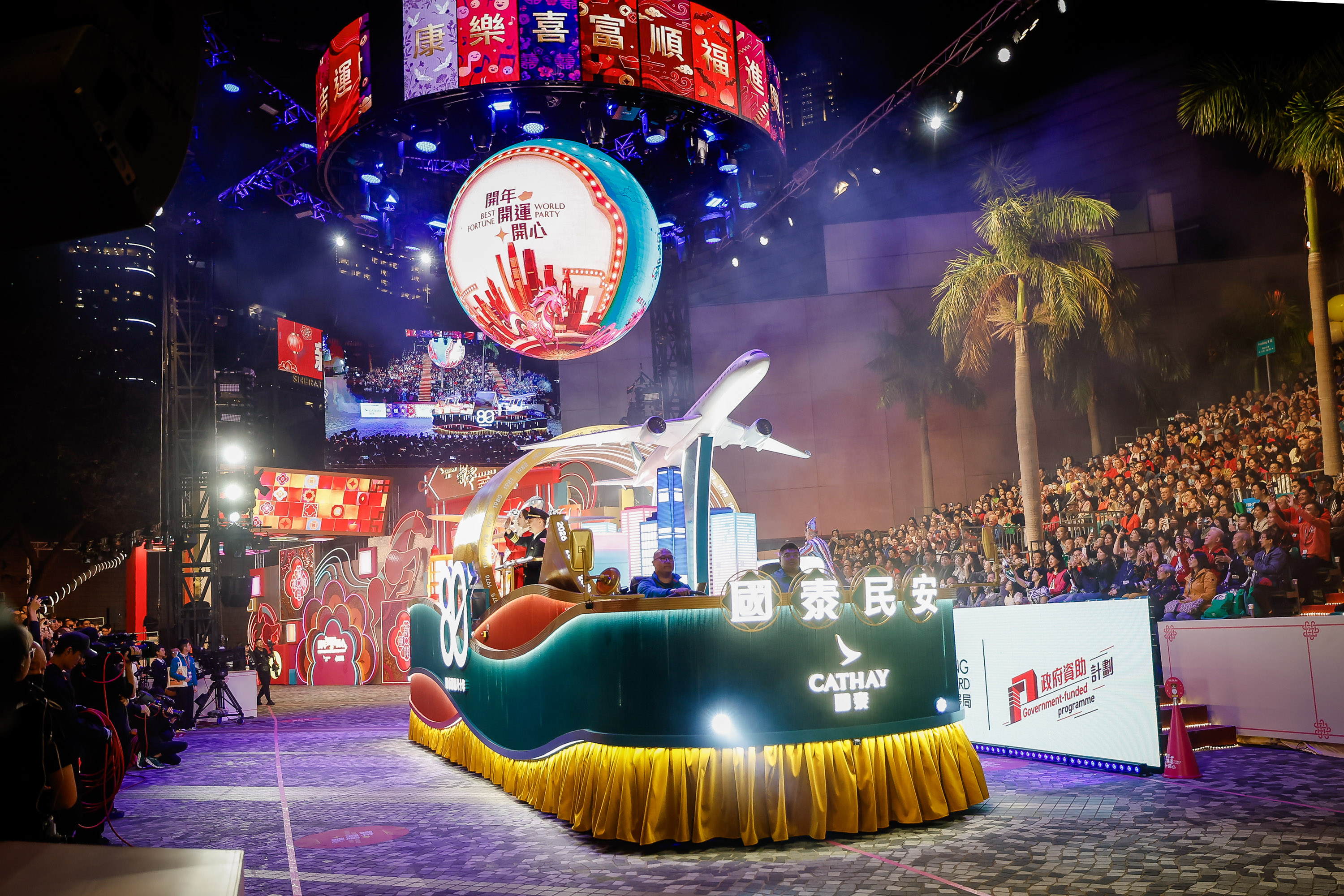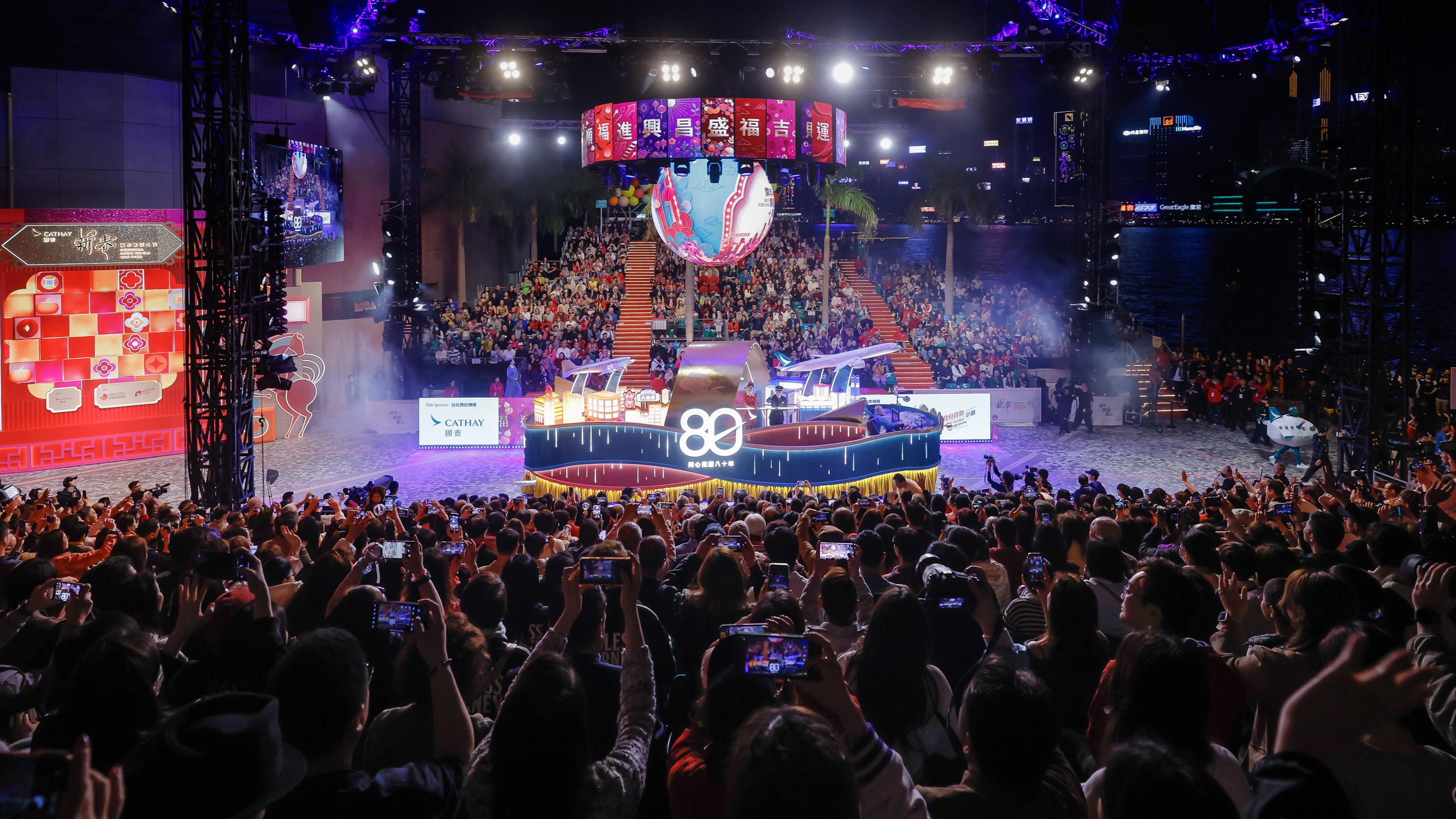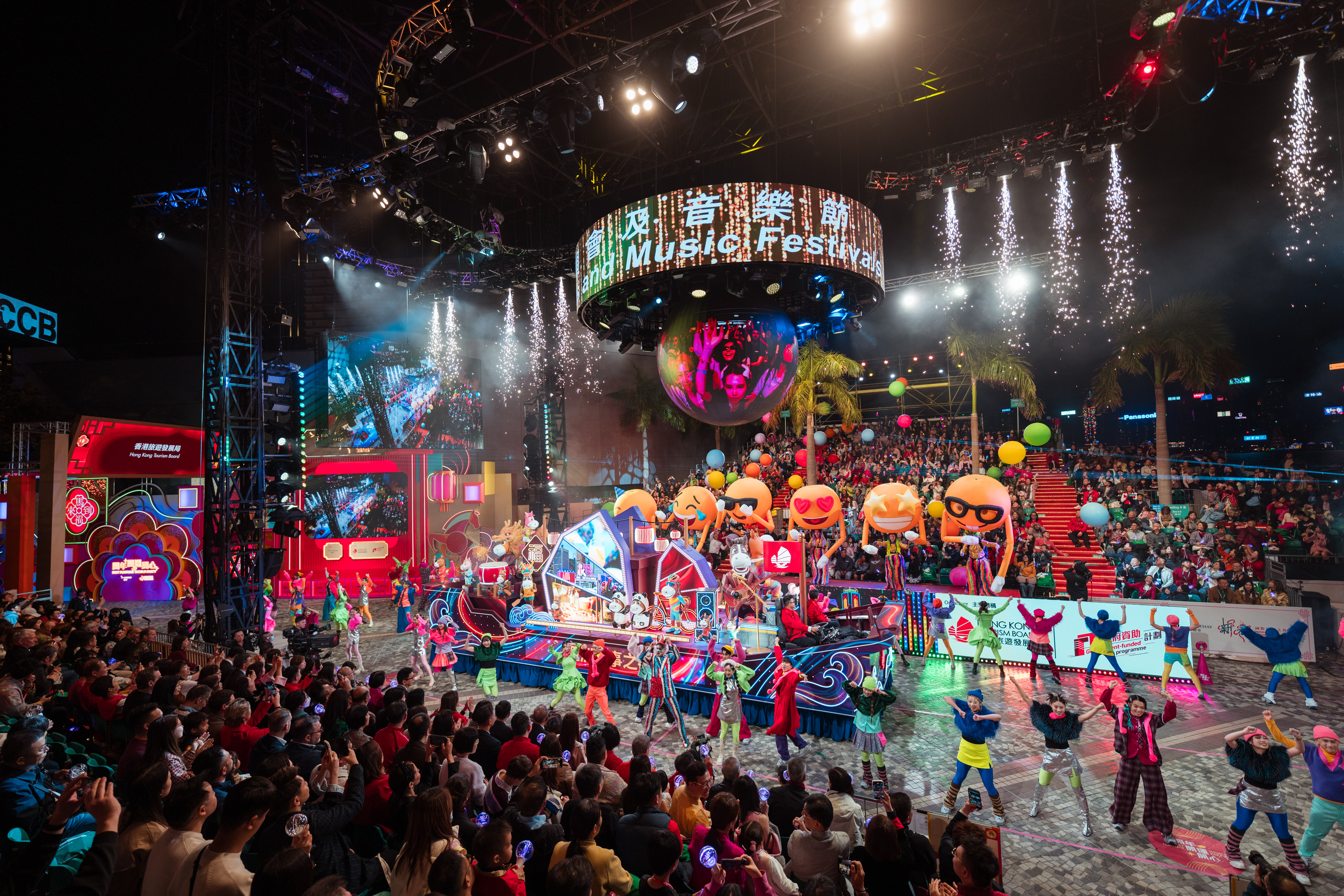 今年汇演的主题是"开年 开运 开心",共汇聚近 60 队花车及来自世界各地的表演队伍, 带来一场热闹国际派对,喜迎马年。
