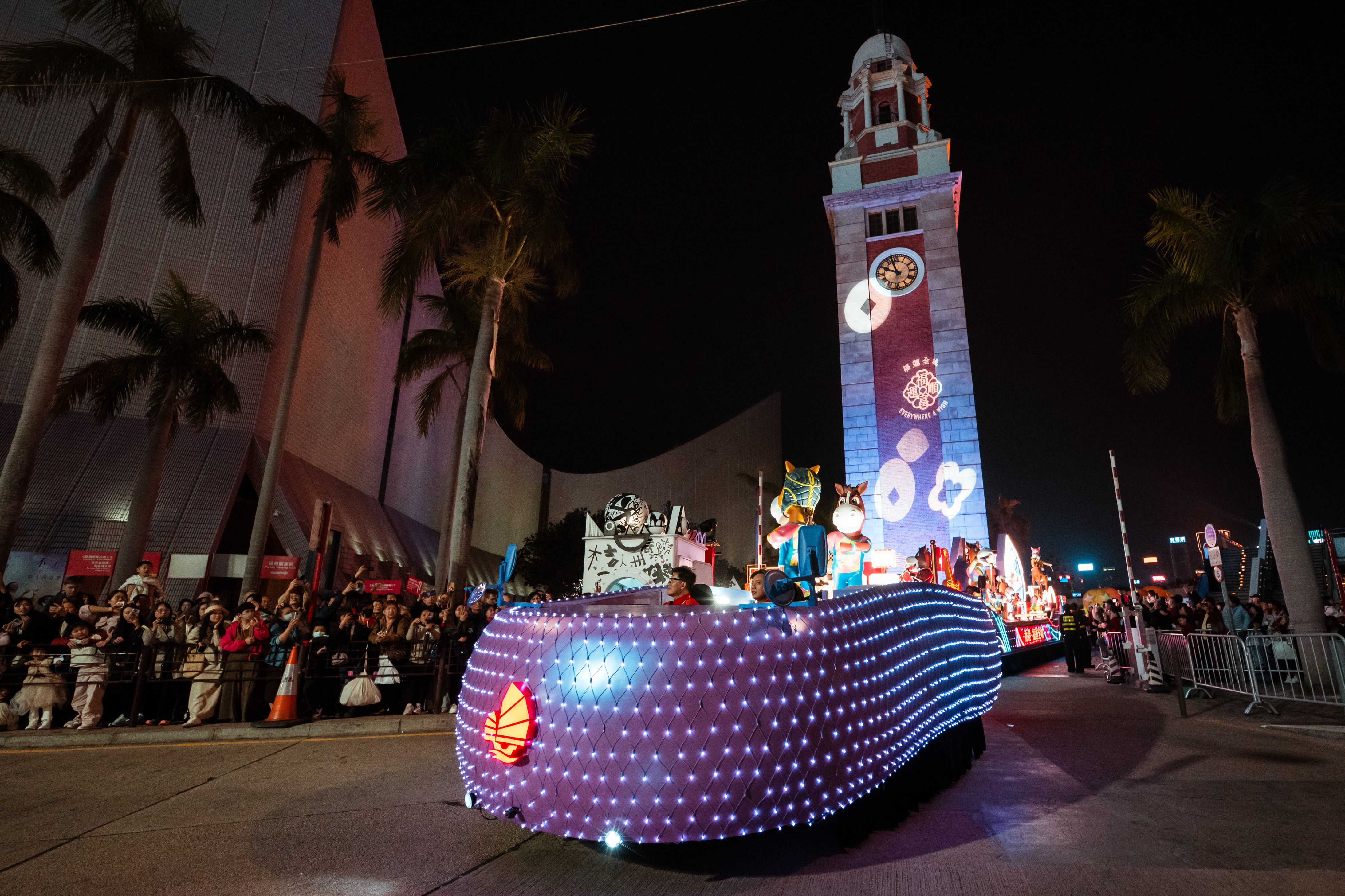 其余四辆花车则会于海洋公园、大埔林村、沙田马场、铜锣湾维多利亚公园展出。表演团队亦会亲临多区商场及景点献技。市民及游客请勿错过到场欣赏及"打卡"留念。