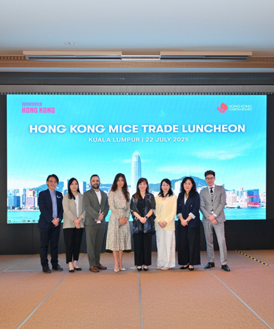 | HKTB organised a MICE Trade Luncheon in Kuala Lumpur on 22 July and Penang on 24 July to update Malaysian travel trade on the latest developments in Hong Kong. Highlights included updates on Muslim-friendly offerings and Hong Kong MICE incentive rewards programme. Guests participated in interactive pre-event activities such as a photo booth, DIY Chinese knotting, and Hong Kong-themed refreshments. At the Kuala Lumpur event, five Hong Kong trade partners from Four Seasons Hotel Hong Kong, Hong Kong Ocean Park Marriott Hotel, Mira Hotel Collection, Ngong Ping 360, and Ocean Park Hong Kong participated and shared updates on their Muslim-friendly offerings. |