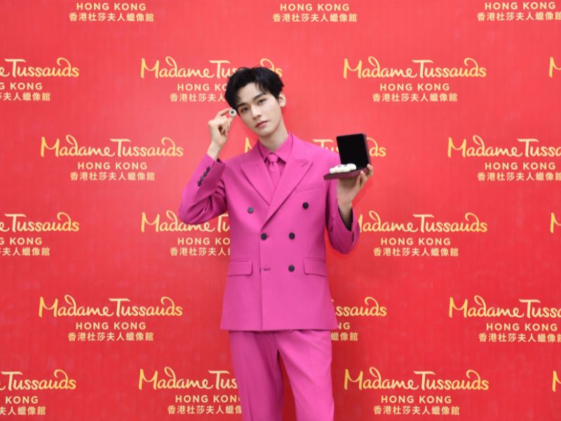 亮桃紅色西裝造型亮相|新「皮膚」鎖定時尚專區 全新進駐的龔俊蠟像身穿一套亮桃紅色雙排扣西裝,面帶微笑揮手致意,展現青春活力與時尚氣質。西裝色彩明亮大膽,設計典雅得體,在跳脫中融入沉穩紳士風度。蠟像不僅還原龔俊俊朗的五官輪廓與陽光氣質,連髮絲紋理與嘴角弧度都細緻入微,整體造型、姿態與表情皆充滿時尚張力。即日起,龔俊全新蠟像正式進駐香港杜莎夫人蠟像館時尚專區,成為國際名人堂中閃耀的新成員。